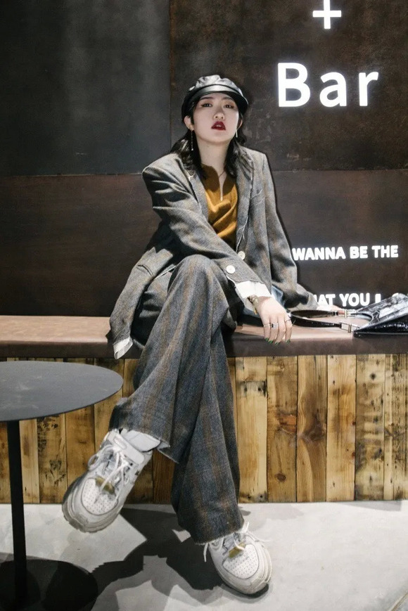 尤其是oversize套装+厚底鞋,完全就是今年最值得穿的一组。贝拉和Gutu都在这么穿~
