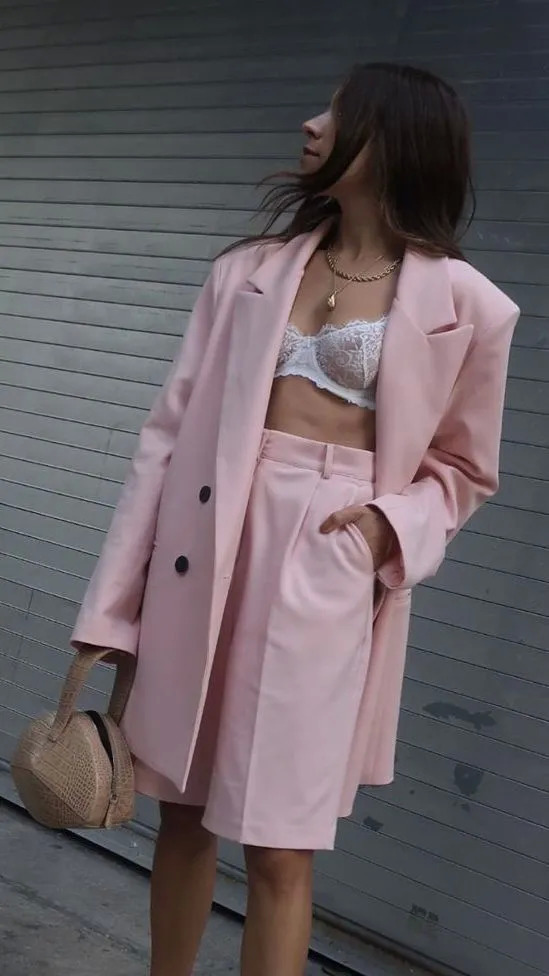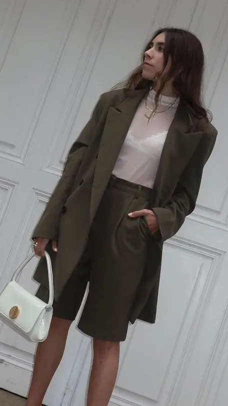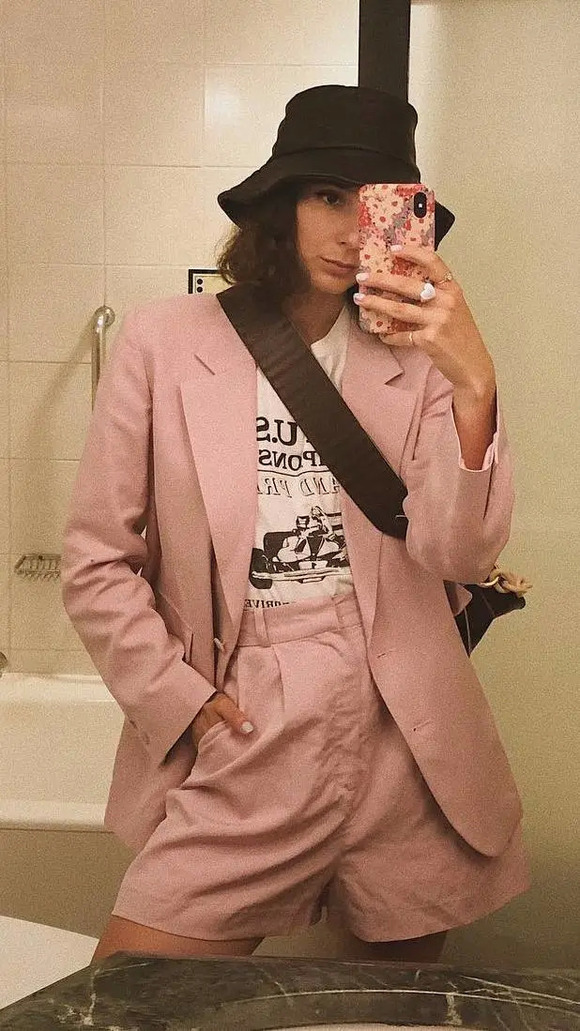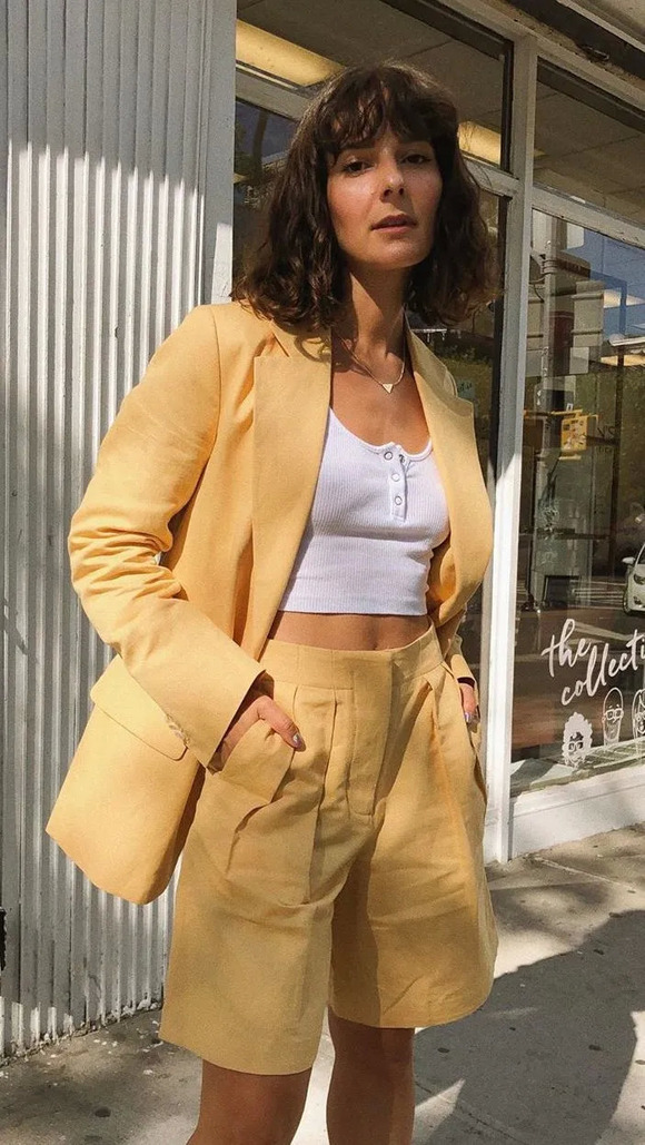 长裤套装的老气也可以通过短裤来化解。一对闺蜜造型师Alyssa和Lauren都有约着穿过好多回。短裤加上明快的颜色,是不是超减龄!