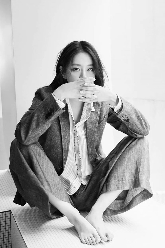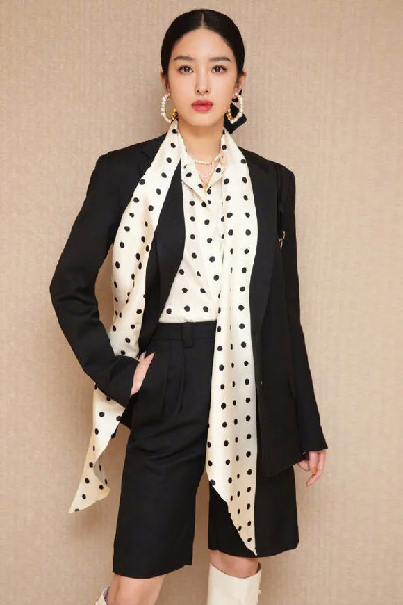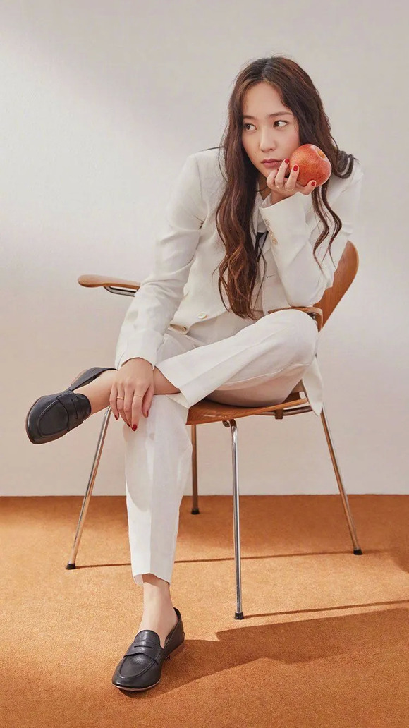 贝嫂经常这么穿,很符合她的女精英人设。就连可爱的德善最近给《嘉人》拍大片时,穿上衬衫和西装套装,都变得干练起来。