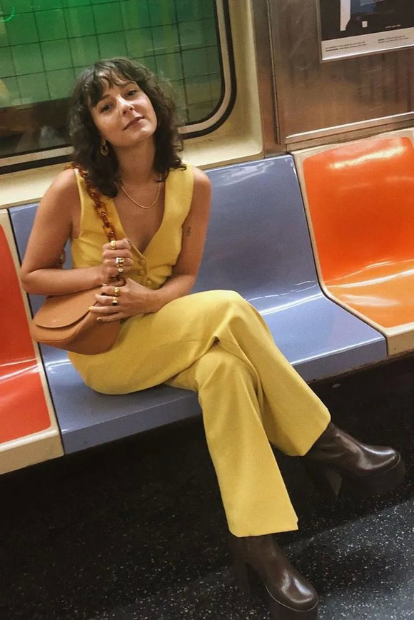 而且这一搭脱掉西装也很好看。Alyssa这身小鸡黄来自钟小姐的品牌ALEXACHUNG,她也是真空穿,怪好看的!