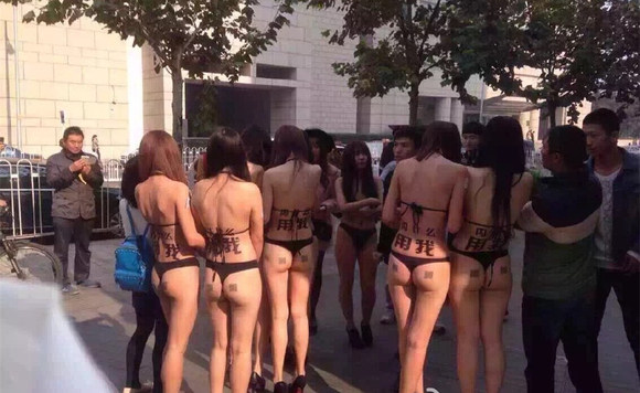 深秋的北京已经寒意袭人,然而建外SOHO继斯巴达勇士之后,再次以一群身穿比基尼的女子惹火了微博和微信朋友圈。今天上午,一群只穿着内衣的长发女子出现在建外SOHO街头,后背写着“内什么 用我”的字样,臀部还印有二维码。