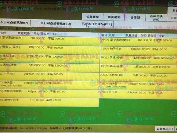 王思聪酒水消费单(图片来自关爱八卦成长协会)
