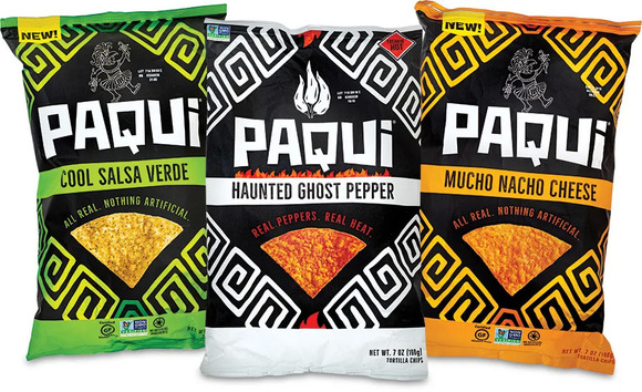 与Uflex 的立方体袋子相比,Prinkpack的Paqui玉米饼包装胜在强烈对比配色和图形设计上。