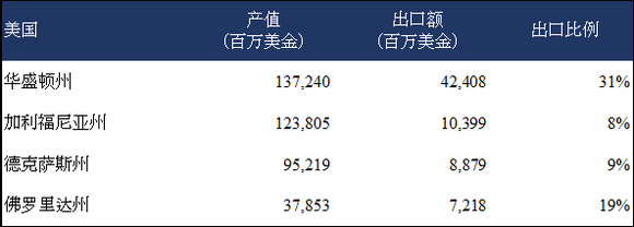 在美国航空业协会最新公布的美国航空业出口数据中,华盛顿州一枝独秀,2017年出口总额468亿美金,占全美航空产业出口额的三分之一,占全州出口额的接近60%。