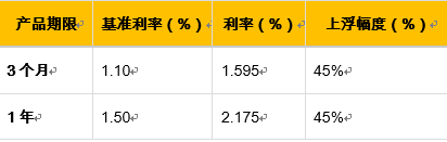 (1)与银行存款基准利率比较。以典型的1年期利率为例,相比基准利率分别上浮45%。