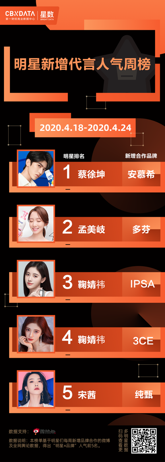 CBNData星数全新发布“明星新增代言人气周榜”及“明星代言周报”,