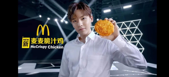 4月20日,麦当劳官宣侯明昊为麦麦脆汁鸡体验大使。