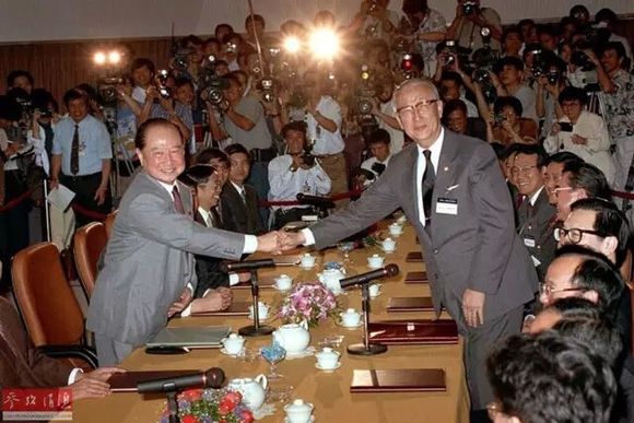 ▲1993年4月27日至29日,备受注目的第一次“汪辜会谈”在新加坡正式举行。这是海峡两岸授权的民间机构最高负责人之间的首次会晤,也是40余年来,两岸高层人士的首次接触商谈。
