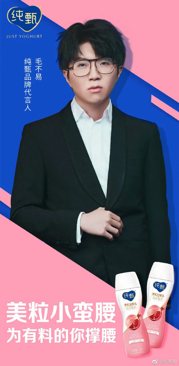 4月25日,纯甄官宣毛不易成为品牌代言人。