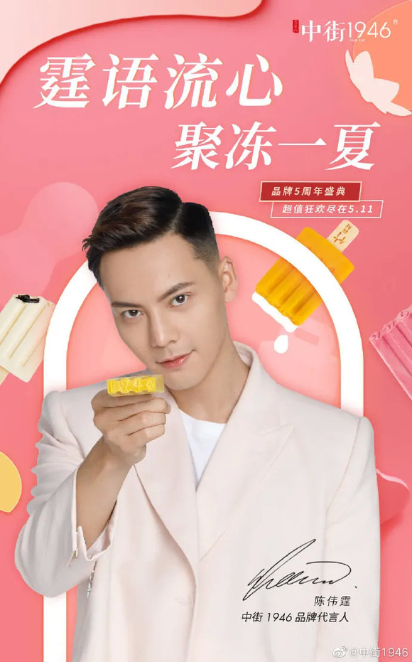 5月1日,中街1946官宣陈伟霆成为品牌代言人。