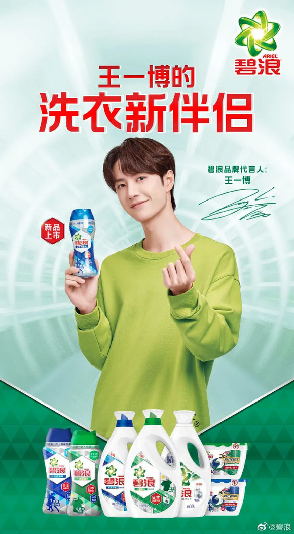 4月27日,碧浪官宣王一博成为品牌代言人。