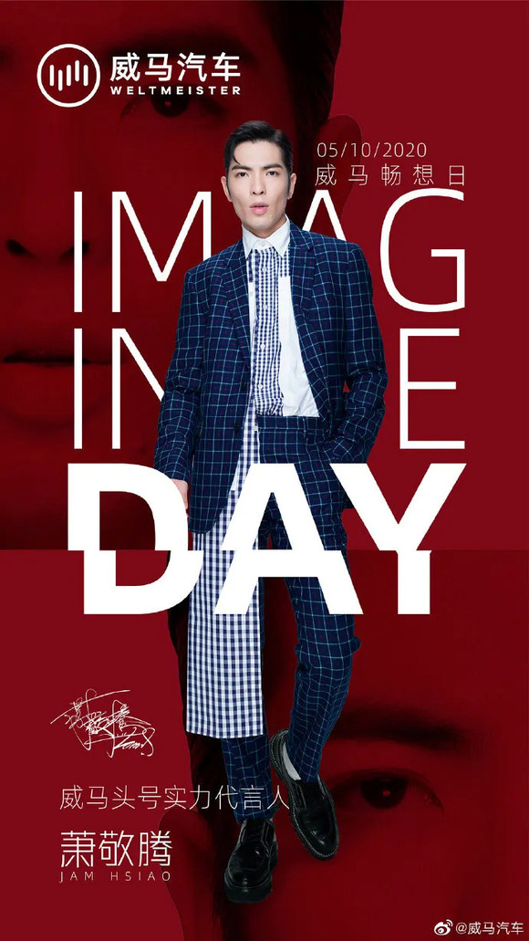 4月30日,威马汽车官宣萧敬腾为实力代言人。