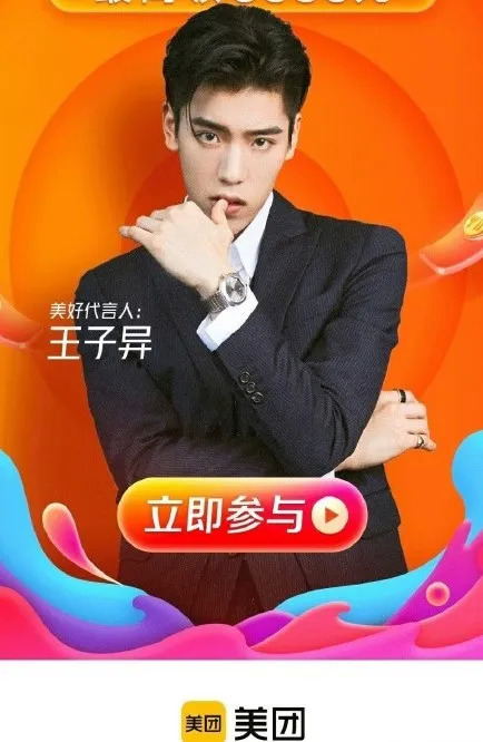 4月29日,美团APP官宣王子异成为美好代言人。