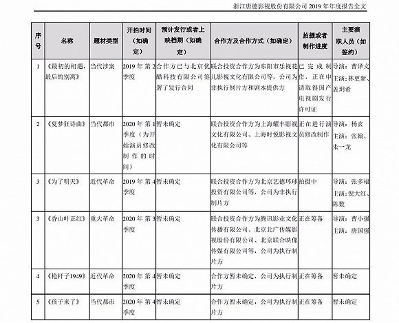 不过,暂且不提《巴清传》能否顺利播出,单从唐德影视的剧集储备来看,除了已售出的剧集外,2020年唐德影视计划投资、拍摄的电视剧和网络剧项目中,《最初的相遇,最后的别离》在发行阶段;《夏梦狂诗曲》在演员修改阶段;《为了明天》处于拍摄阶段,另有3部作品处于筹拍状态。