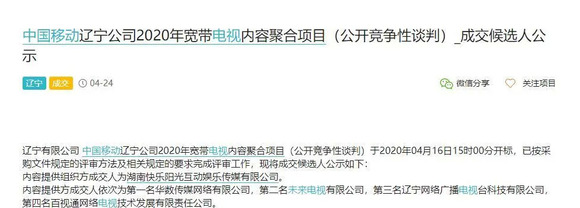 1、合作双方:中国移动辽宁公司与湖南快乐阳光互动娱乐传媒有限公司