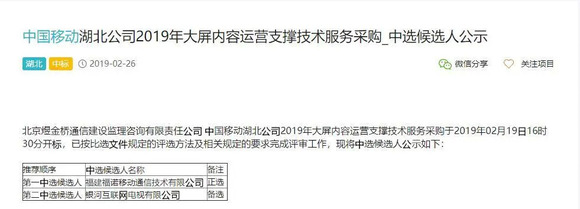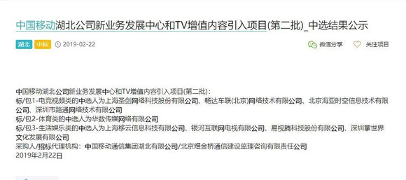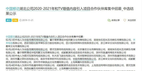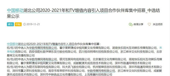 3、合作双方:中国移动湖北公司与湖南快乐阳光互动娱乐传媒有限公司