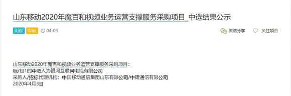 5、合作双方:中国移动山东公司与银河互联网电视有限公司
