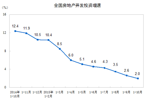 根据国家统计局数据,前10月,全国房地产开发投资78801亿元,同比名义增长2.0%,增速比1-9月份回落0.6个百分点。其中,住宅投资53150亿元,增长1.3%,增速回落0.4个百分点。住宅投资占房地产开发投资的比重为67.4%。