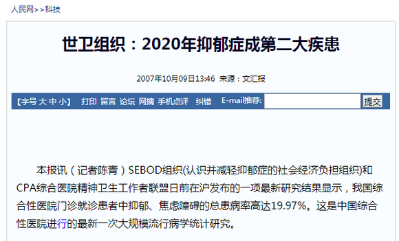 早在2007年,世界卫生组织(WHO)就曾预测,抑郁症将成为2020年第二大的疾病负担。如今,2020年恰逢前所未有的新冠肺炎疫情,该预测也不幸言中。