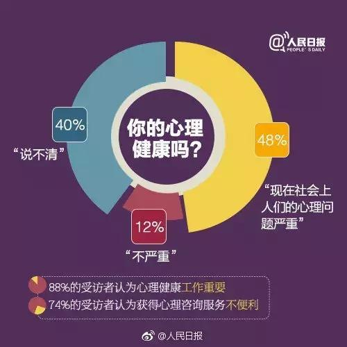 2019年2月22日,中国科学院心理研究所、社会科学文献出版社共同发布了第一部“心理健康蓝皮书”,其中的数据显示,88%的受访者认为心理健康工作很重要,而接近50%的受访者认为,现在社会上人们的心理问题很严重。