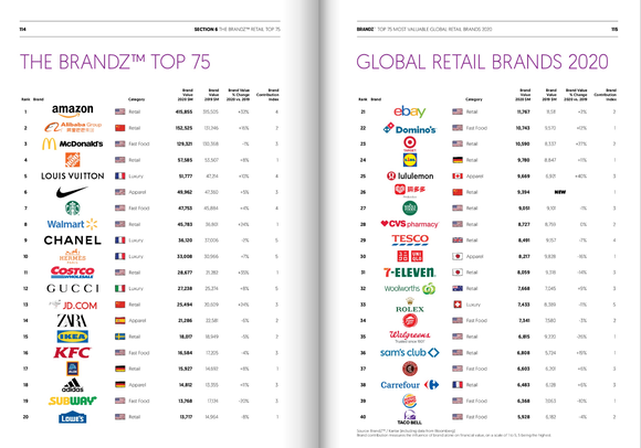 附录:2020年 BrandZ 全球最有价值 75大零售品牌完全榜单
