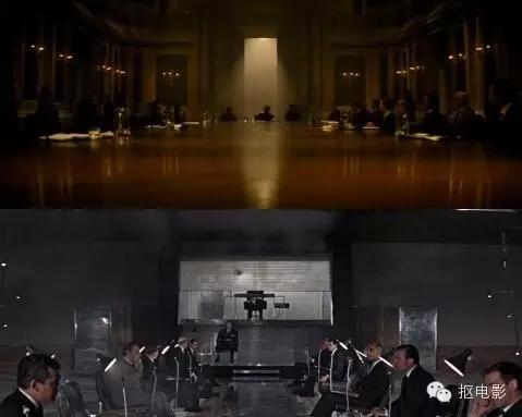 《幽灵党》里开会的场面与《007:霹雳弹》的场面如出一辙。