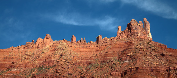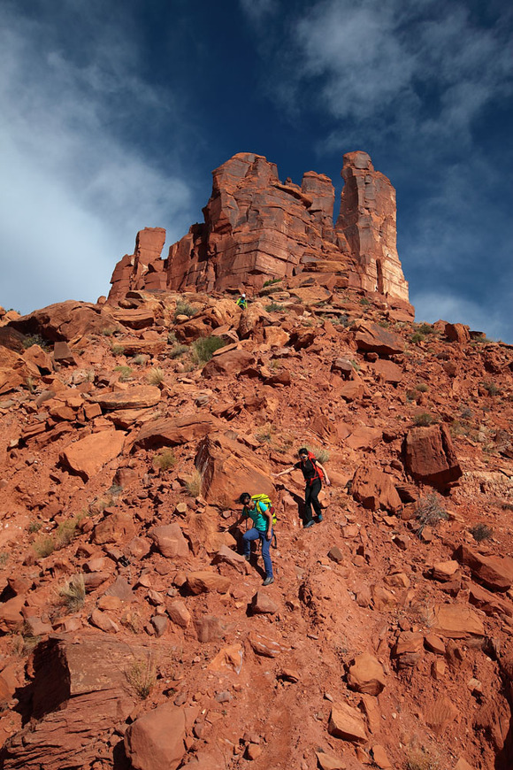 写出来好似简单,实际上这是一条漫长的跋涉之路:实际接近路途超过10公里,徒步超过两小时。也难怪我们跋涉时几乎看不到脚印——在北美科罗拉多高原荒漠地貌的高塔有几百座,不乏易于接近的经典路线,也许是因为有这样的长途跋涉,所以这条路线才略显冷清。但即使是跋涉路段也是非常值得称道!当然这只是后话,身在途中,基本是被辛苦与疲惫环绕,会一边走路一边暗骂自己自找苦吃。