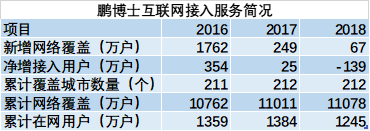 到2018年,主营的宽带接入服务业务的净增接入用户数大幅下滑139万户,新增的网络覆盖户数缩水到2016年水平的3.8%,覆盖城市数量也不再提升。
