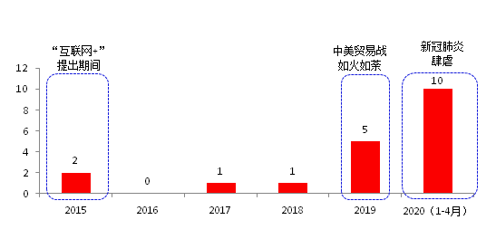 图表:中央关于新基建召开会议和发布文件的数量统计