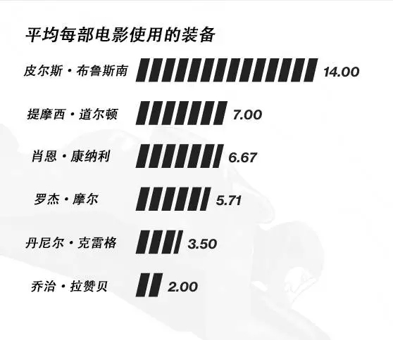 彭博商业总结出这位经典英国间谍最具代表性的8个特点,追踪了他们在24部007系列电影的3053分钟33秒影像中的足迹。下面让我们用数字来还原邦德的形象。