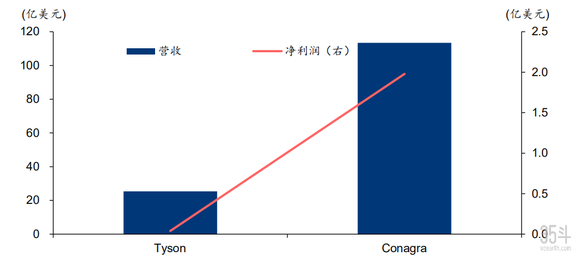 对于猪肉、牛肉养殖成本远大于肉鸡这类的禽畜,泰森食品在布局上不再参考之前对鸡肉产业的全产业链式切入手段,而是将主要的扩张业务放在中下游产品加工商。