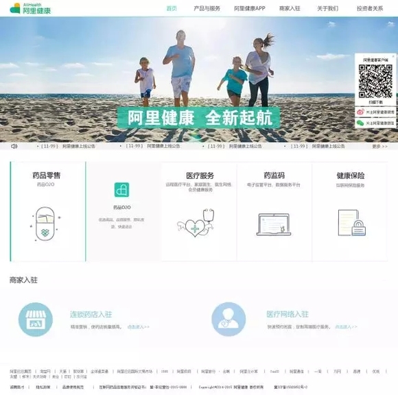 11月18日,阿里健康官方网站以www.alihealth.cn域名改版上线,官网展示阿里健康药品零售、医疗服务、药监码和健康保险等四大业务版块,同时,官网也承担了连锁药店和医疗网络的自助进驻功能。