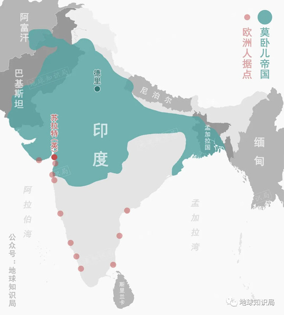 十七世纪初,成立之初的英属东印度公司虽然背靠英国王室地位煊赫,但也仅仅是一家在印度没有固定据点的贸易公司。直到1615年莫卧儿帝国的皇帝给予其定居的权力,垄断了英印贸易的英属东印度公司才开始逐渐扩张。