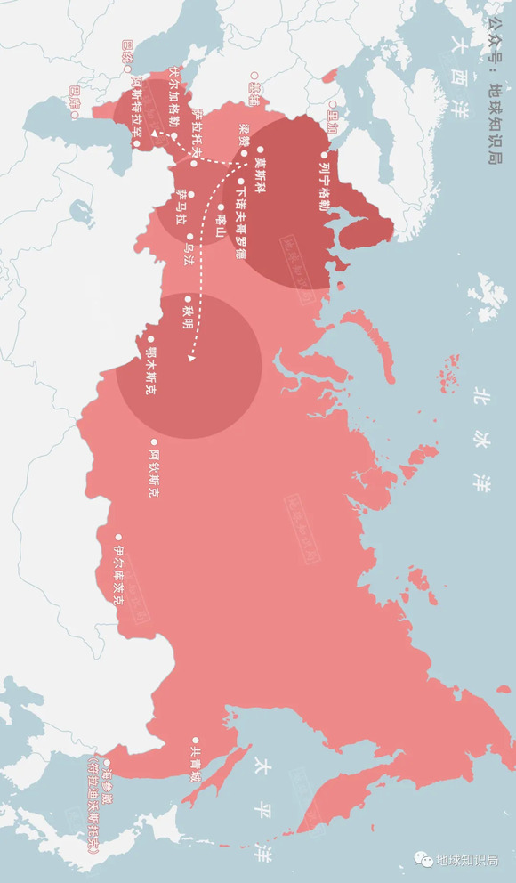 前苏联作为一个横跨欧亚两大洲的国家,其经济、人口的重心都在欧洲部分,它的欧洲部分虽然拥有五海出口,但是五海之中里海只是内湖,波罗的海、黑海和亚速海通向大洋的出口又掌握在别人手里。只有漫长的北冰洋海岸能让苏联包括后来的俄罗斯安心走上出海进入大洋的道路(如果解冻的话)。