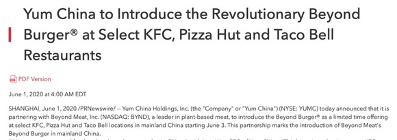 “我们认为植物肉在中国市场潜力巨大。”百胜中国首席执行官屈翠容在今天发布的一份通报中表示,肯德基、必胜客和塔可贝尔通过此次新品上市,预期将在中国不同地区获得有价值的消费者反馈。“这将使我们能够优化口味和工艺,并有助于评估未来大规模推广的潜力。”
