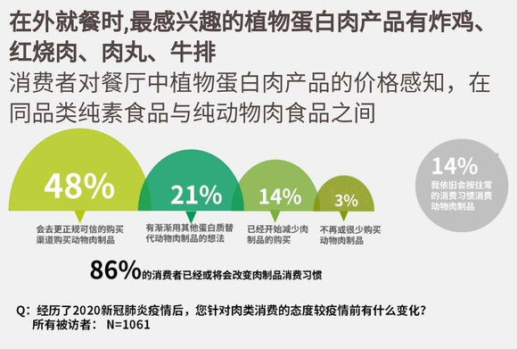 根据益普索Ipsos调研数据显示,超过70%的消费者认为目前食用的加工肉制品(午餐肉等)可以被替代;植物基人造肉的替代性比实验室培养肉更高,尤其在加工肉制品与豆制品的品类中,86%的消费者表示将会在新冠疫情后改变肉类消费习惯。