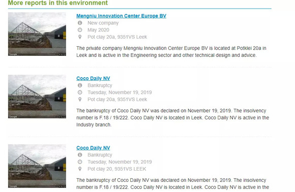 资料显示,SieveCorp成立于2012年,地处荷兰格罗宁根省的一个名为“雷克(Leek)”的城市,是在去年10月被一家荷兰法院判决破产的。