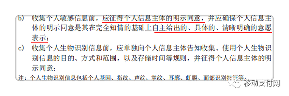 在《信息安全技术个人信息安全规范》中明确要求,信息采集应把个人信息主体自主作出的肯定性动作,如主动点击、勾选、填写等,作为产品或服务的特定业务功能的开启条件;收集个人敏感信息前,应征得个人信息主体明示同意。