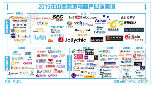 报告还发布了2019年中国跨境电商产业链图谱,其类目包括:
