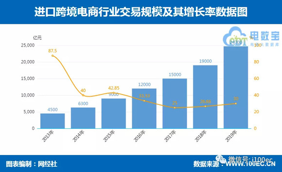 报告显示,2019年中国进口跨境电商市场交易规模为2.47万亿元,同比2018年1.9万亿增长30%。(含B2B、B2C、C2C和O2O等模式)