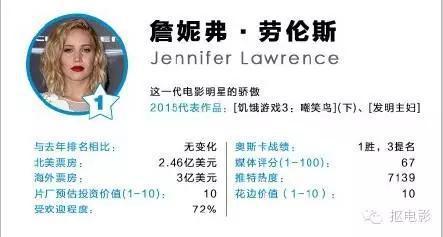 这妞前几天刚荣升好莱坞最具价值明星第一名,连我们熟悉的钢铁侠尼尼和小李子都排在她后面呢!(此处应有掌声)