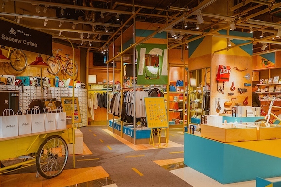 除了几辆名为“后街”、“美术馆”、“繁华”的700bike定制单车以外,你还可以看到瑞士包袋品牌FREITAG、咖啡连锁品牌Seesaw和不少文艺书籍。