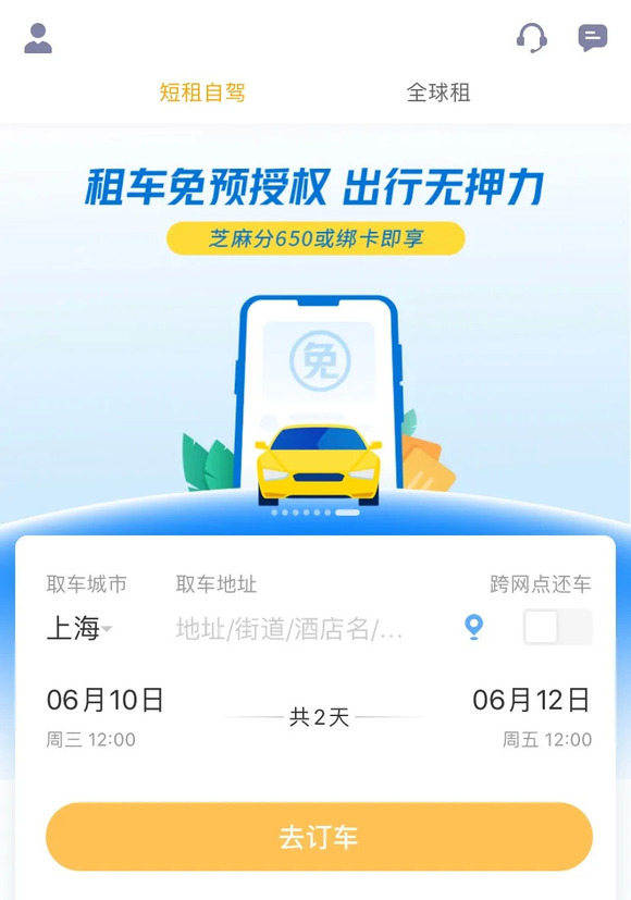 神州租车App界面