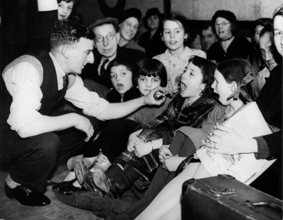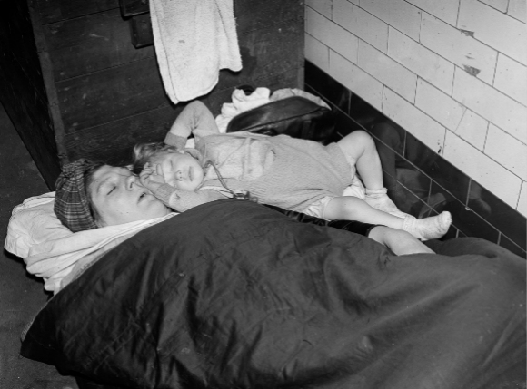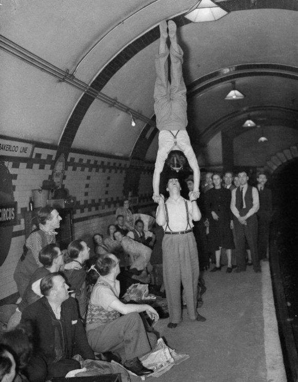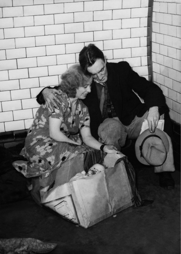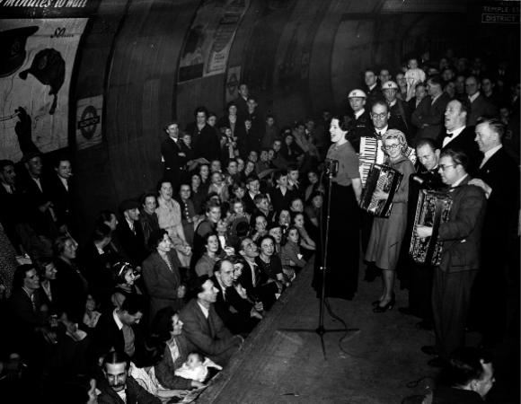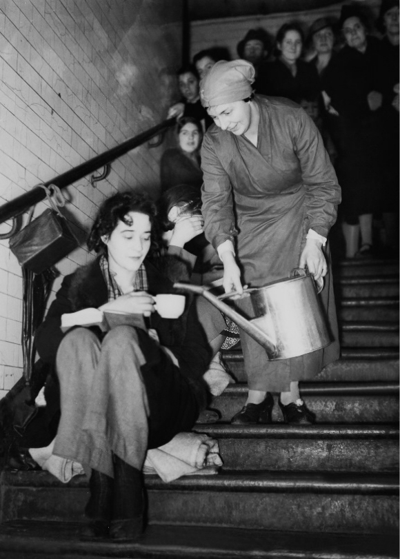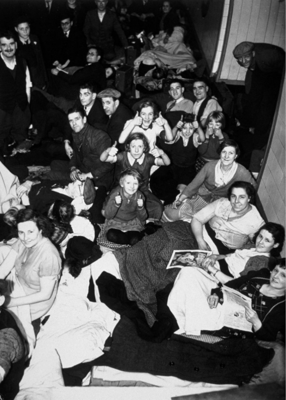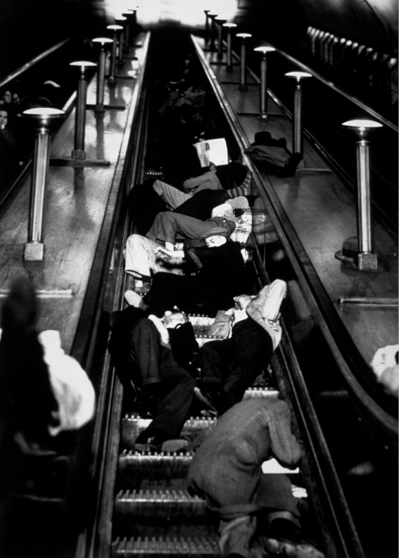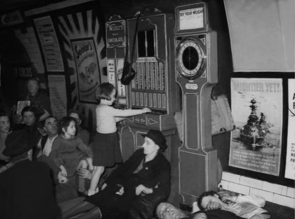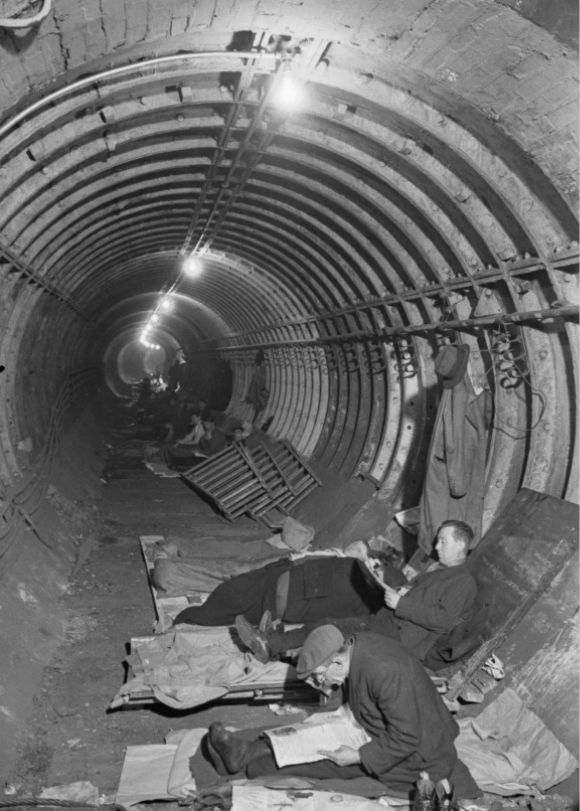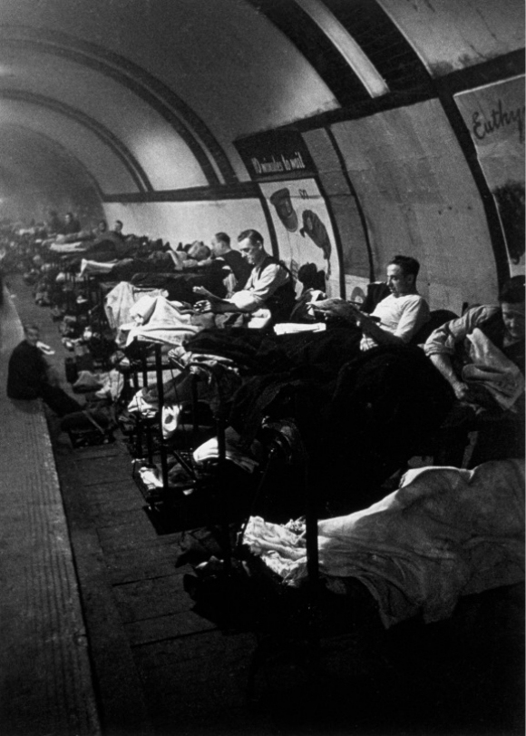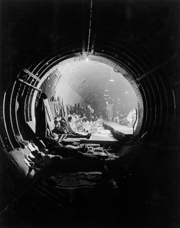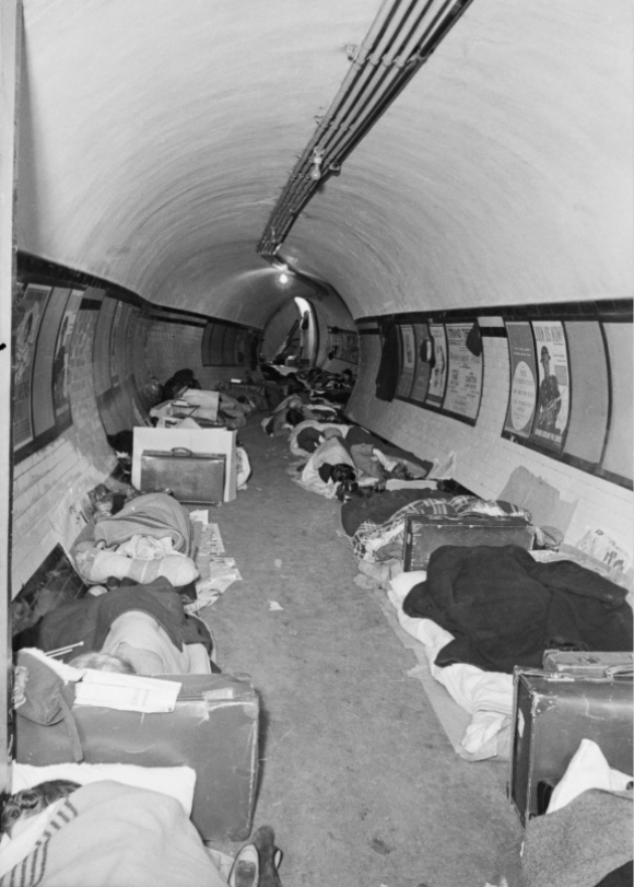 最初,政府对于在地铁站里避难很谨慎,但成千上万的伦敦人聚集在地下,而地上是猛烈的轰炸,他们拒绝回到地上,即使他们的工作能让英国恢复运转,他们也拒绝工作。越来越多的人无家可归,因此政府终于让步,同意大家去地铁站避难,还给一些地方安装了上下铺。
