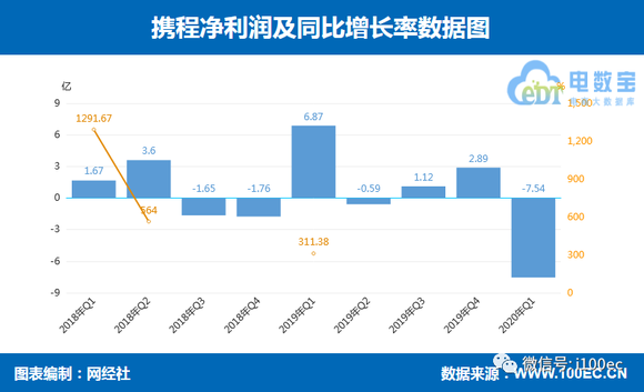 携程2020年Q1营收47亿元 净亏损54亿元