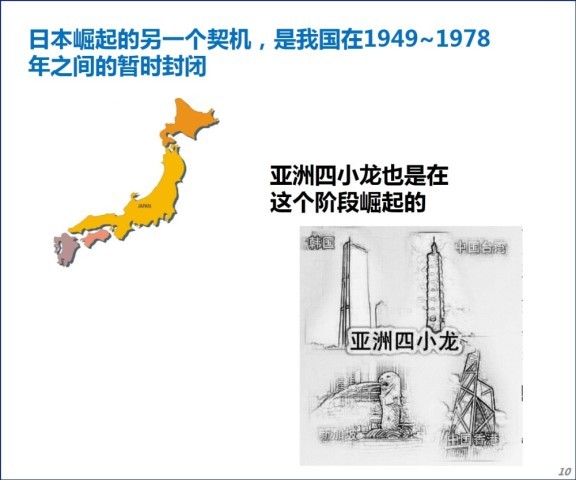 战后日本经济的崛起有两个契机,一是超限战争,一是中国在改革开放之前的暂时封闭。日本抓住机会,迅速成为亚洲四小龙之一,利用金钱对全球展开了第二次侵略。
