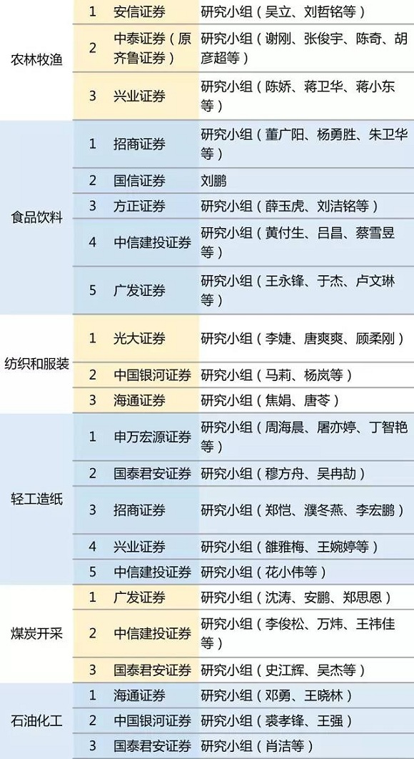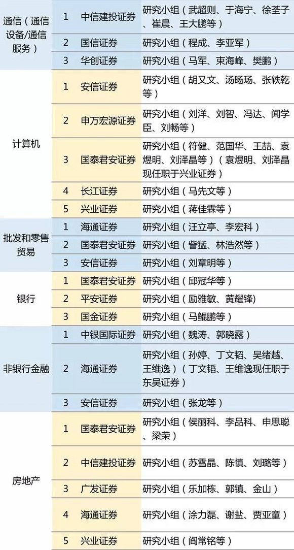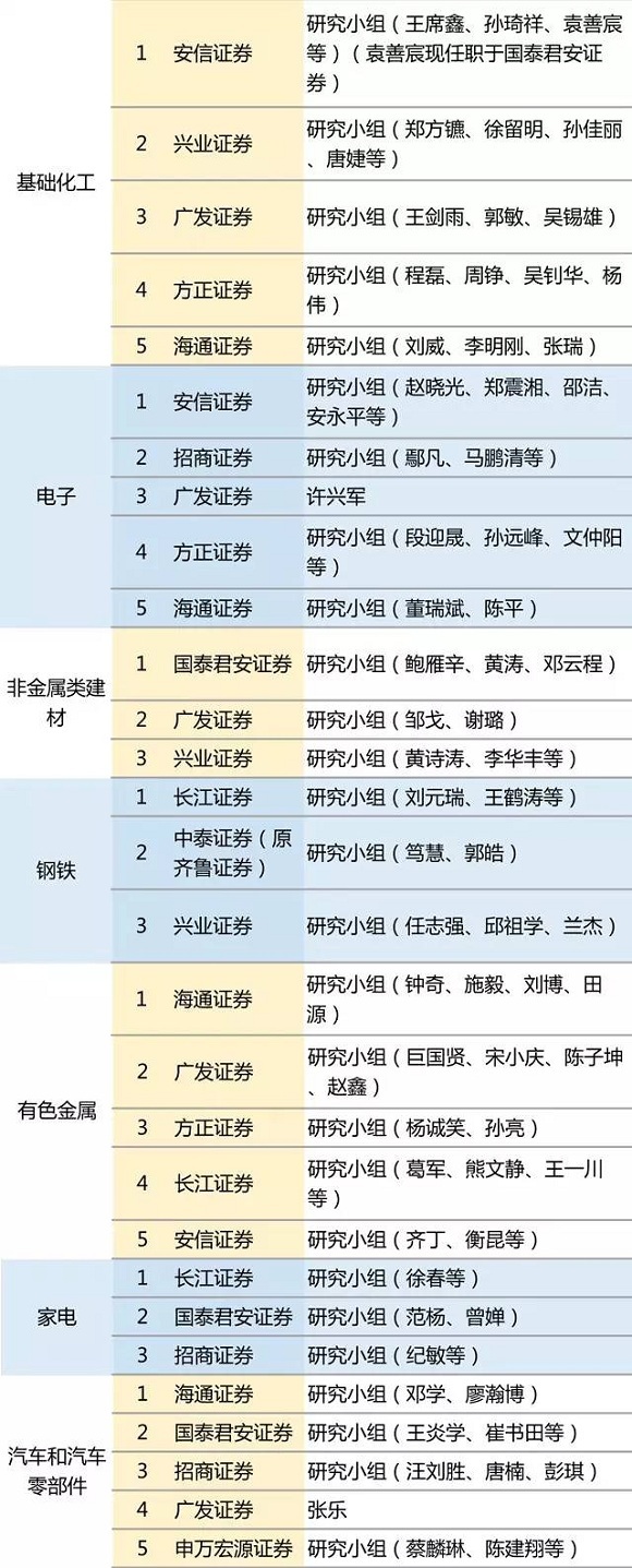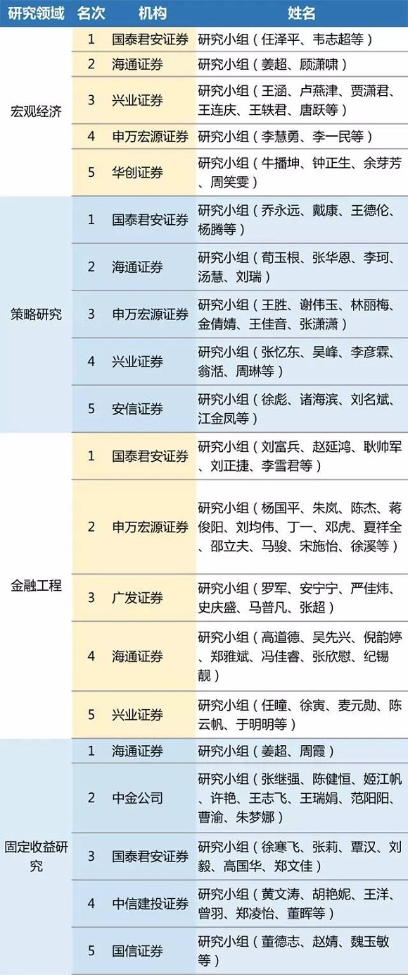 国泰君安、海通证券和兴业证券、申万宏源证券等券商收获颇丰。其中,备受瞩目的策略研究最佳分析师第一名为国泰君安证券乔永远团队,第二名为海通证券荀玉根团队。国泰君安任泽平则揽获“最佳宏观分析师第一名”、“最受公募欢迎分析师第一名”、“最受私募欢迎分析师第一名”和“最受保险欢迎分析师第二名”等多个奖项。