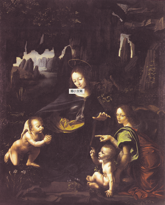 也正是在此期间,达·芬奇创作了《岩间圣母》。此前以圣母子为题材的作品,其背景或是祭坛,或是室内空间,或是空旷的室外。让圣母子身处幽幽的岩洞之中,还是历史上头一次。这与世隔绝的环境设定,或许反映了当时的世人想要寻求庇护的愿望。
