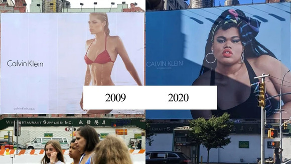 网友拿11年前的CK广告牌做对比 左:杜晨·科洛斯;右:雅里·琼斯