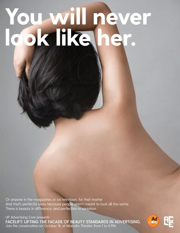 当我们以刻板标准来看待女性身体,来要求荧幕上的女性内衣模特时,我们实际上也在传达一种身体具有优劣等级的意识。